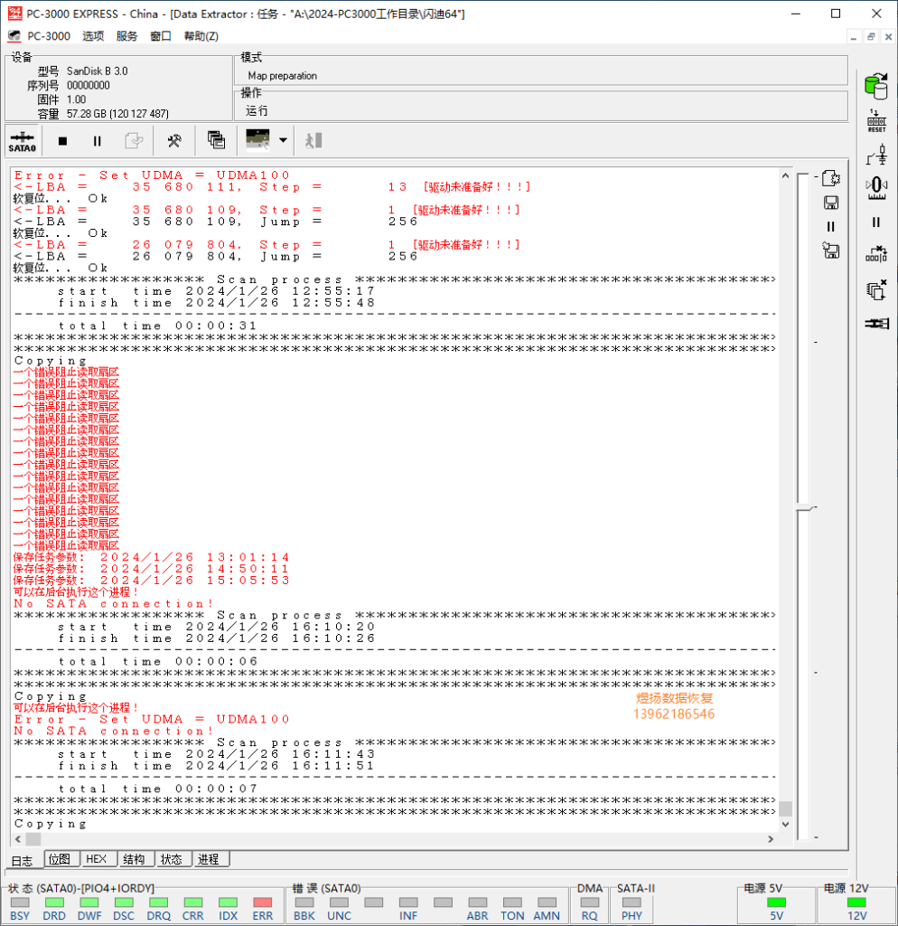 工程师那到U盘检测故障与客户描述一致,工程师把U盘接入专业设备镜像处理,成功读取目录和数据.
